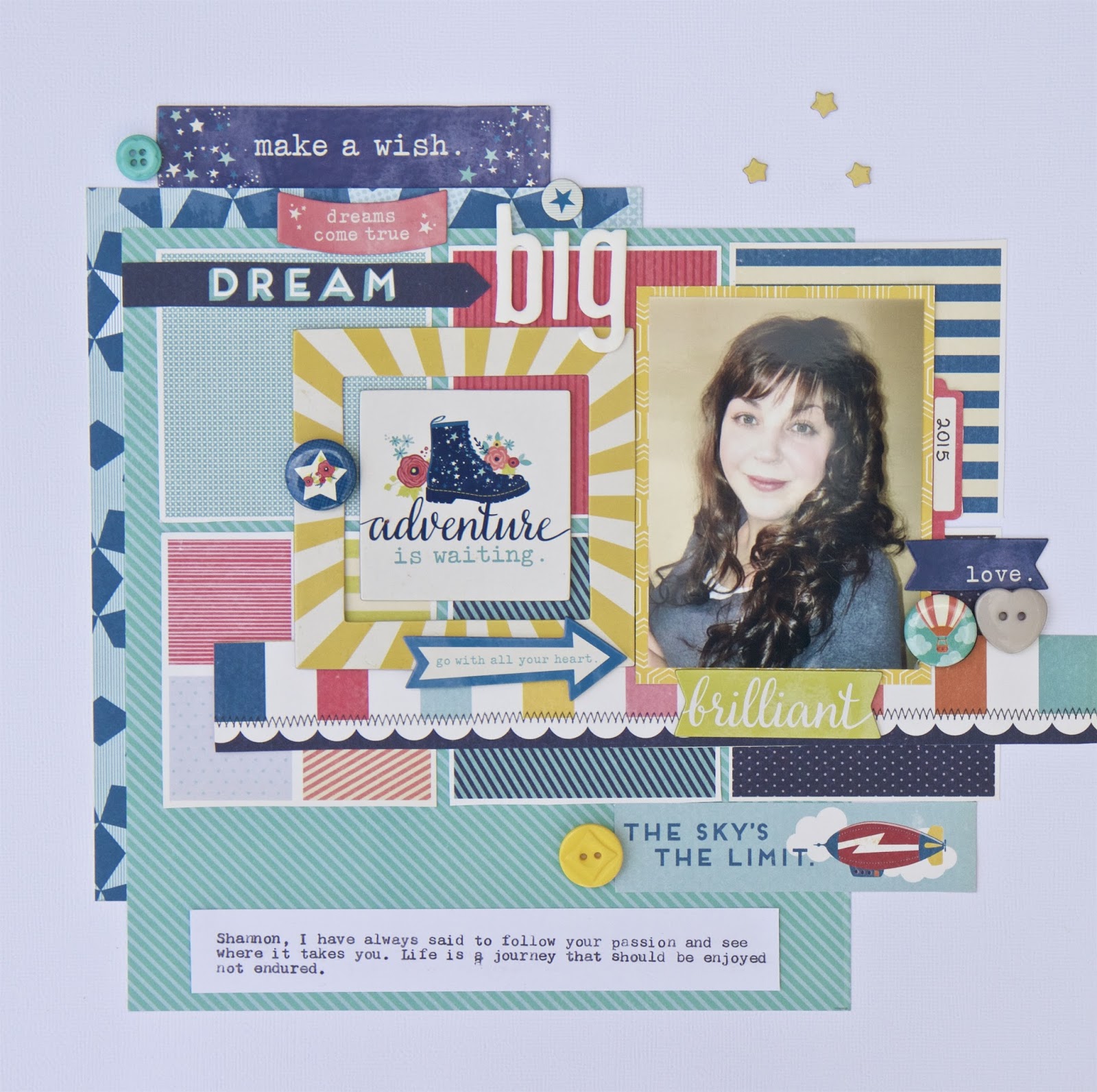 Puffy stickers simply add even more dimension and interest so I added a fox, flower, leaf, arrow, branch and "explore" puffy stickers.
